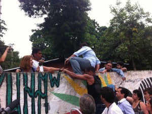 Os índios obstruíram o portão de acesso principal do museu, uma forma de resistir a injustiça e a demolição de um local que até hoje preserva a memória e a história do povo indígena.